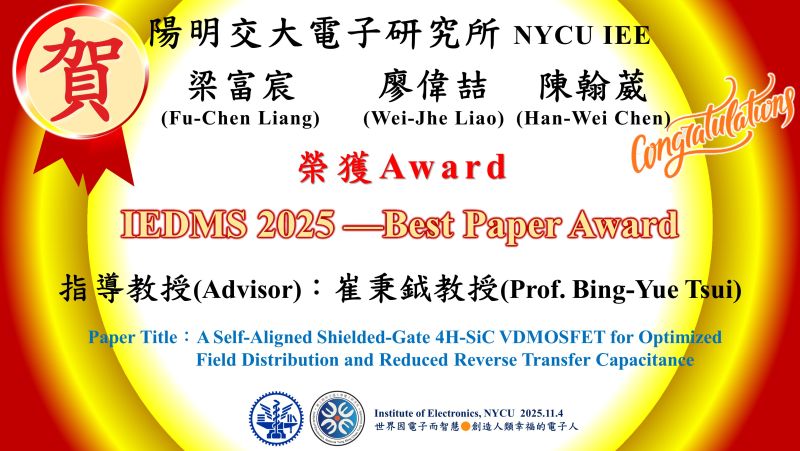 Congrats! NYCUIEE Prof. Bing-Yue Tsui's Team wins IEDMS 2025 —Best Paper Award